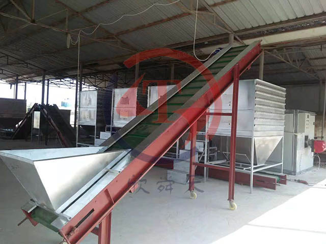 換熱式燃?xì)鉄犸L(fēng)爐(40萬(wàn)kcal),風(fēng)機(jī)18.5kw,送風(fēng)管、多層翻轉(zhuǎn)式烘干機(jī)4臺(tái)、溫控柜、上料輸送機(jī)2臺(tái),出料輸送機(jī)、料倉(cāng)等。
